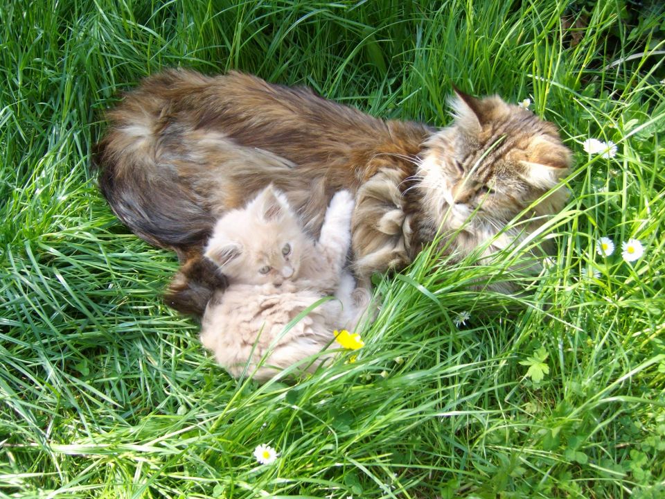 Lilly ist ihr Rufname. Wir haben uns so gefreut , dass sie zu uns durfte. Mit knapp 8 Monaten war sie schon etwas gröÃer, hat sich aber sofort eingelebt und sich wohl gefühlt. Etwas fülliger und auf nicht sehr hohen Beinen unterwegs , wurde sie von uns auch liebevoll " dicke Lilly " genannt. Sie ist die Mutter vom " E " Wurf. Eddie und El Corleone, unser Kater. Leider hat sich gleich nach der Geburt von den beiden herausgestellt, dass sie keine weiteren Kitten mehr bekommen darf. Sie lebt heute als "geliebte " Coonie in einer Familie die sie ganz besonders u schätzen weiss.