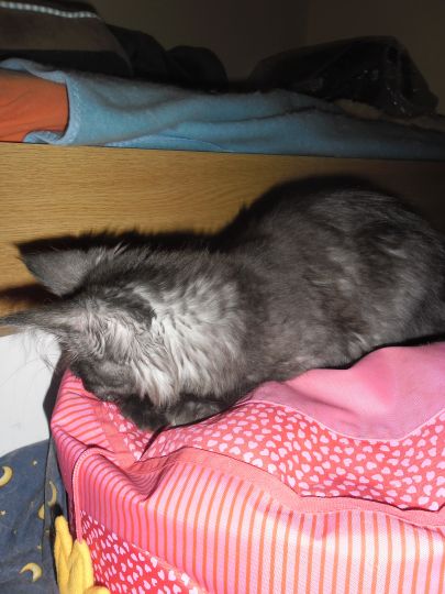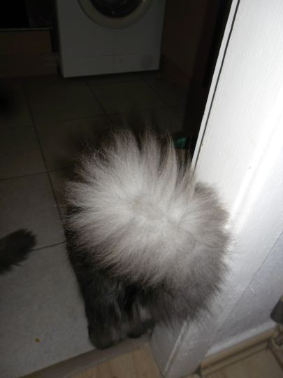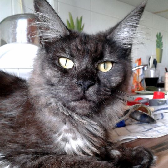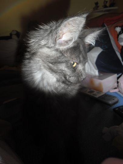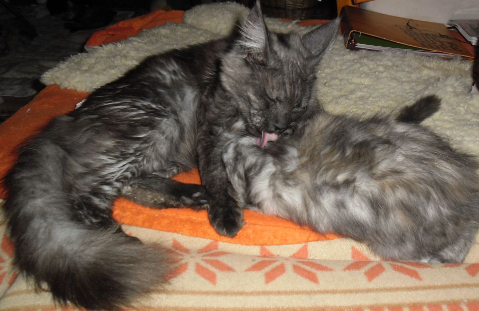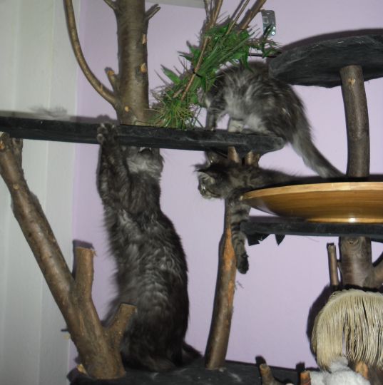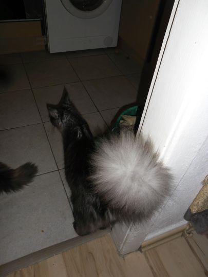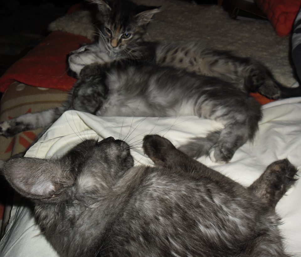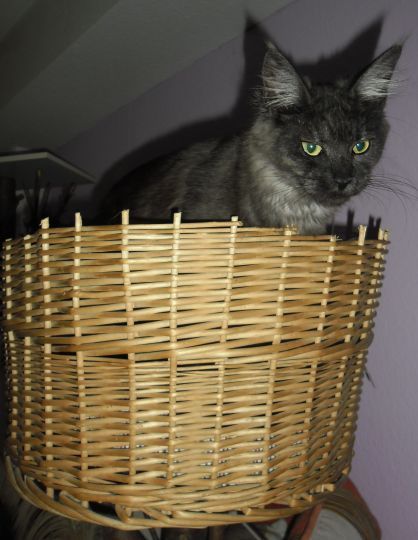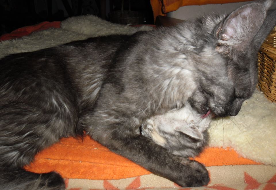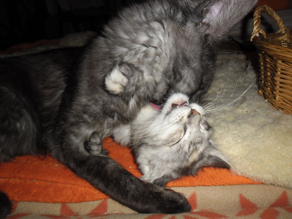 Sie ist schwärzer als ihr Schatten. Das dunkle Gesicht und die bernsteingelben Augen lassen sie so Eulenhaft wirken wie sonst nur eine echte Eule sein kann. Sie entwickelt sich prächtig, wird von Tag zu Tag schöner und silbriger. Danke Susi, dass du uns diese Prachtkatze überlassen hast. Wir beobachten gespannt ihre weitere Entwicklung.