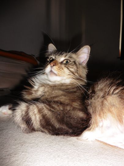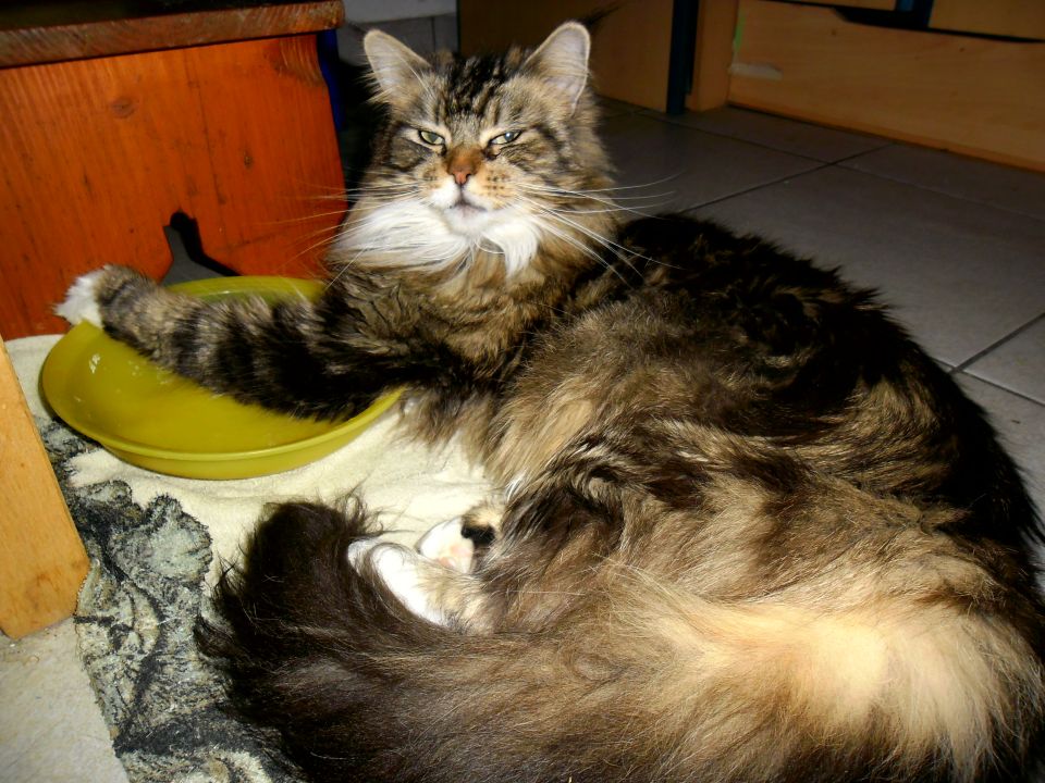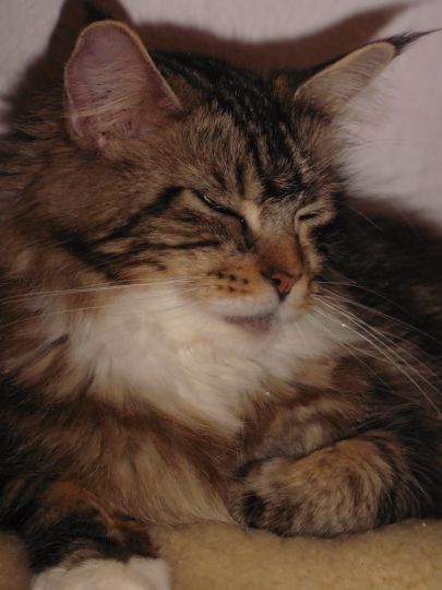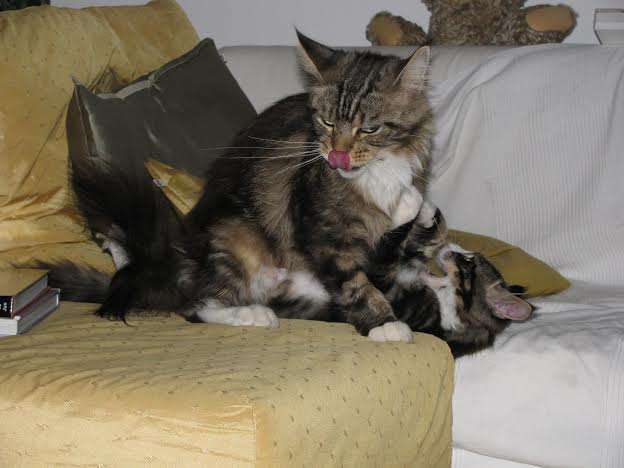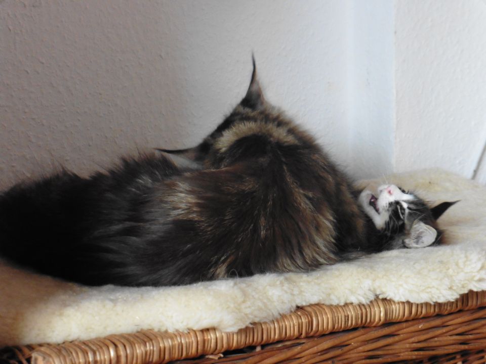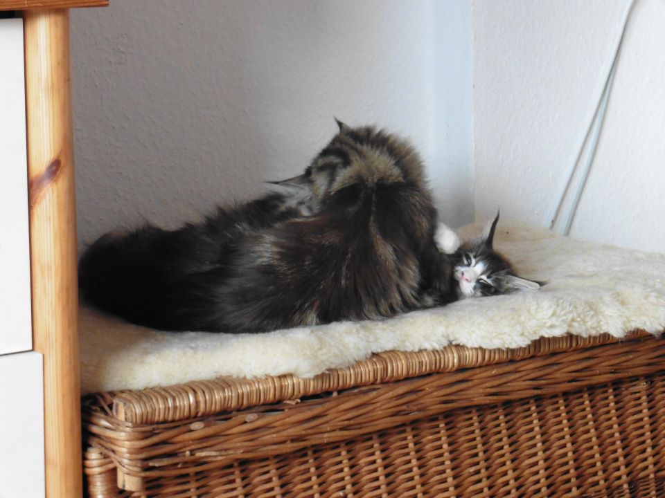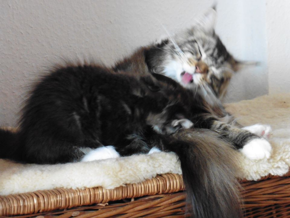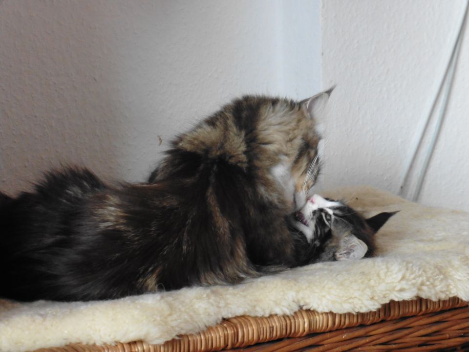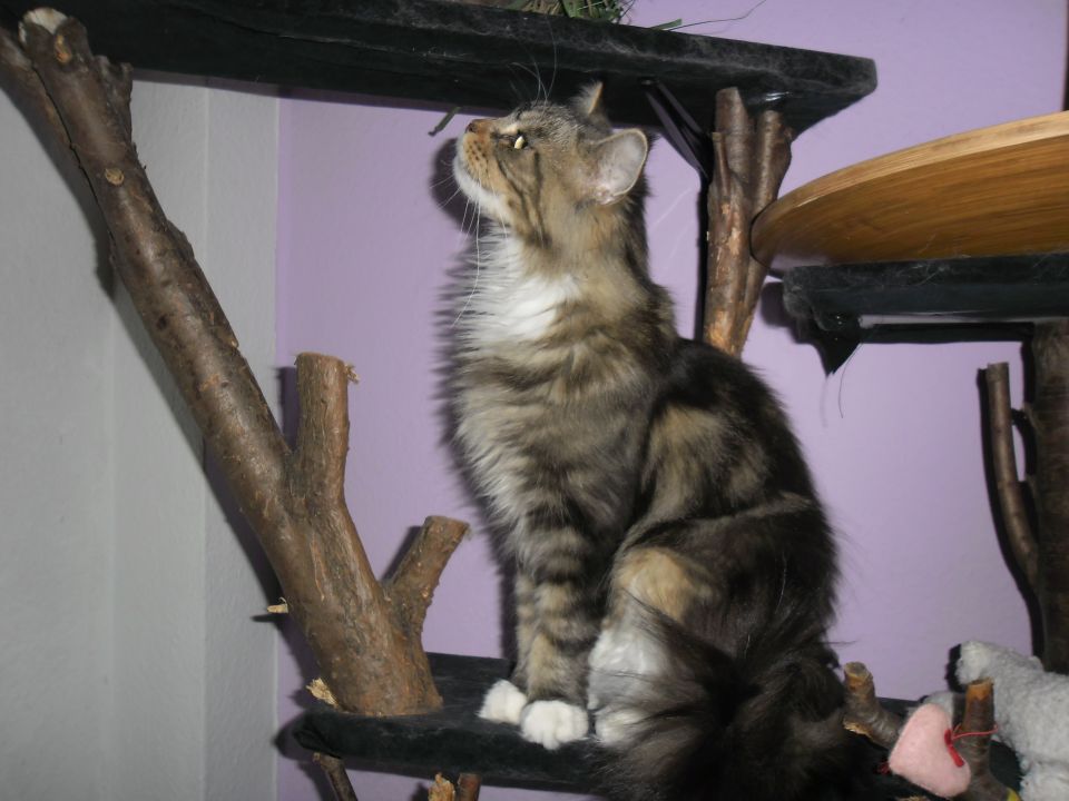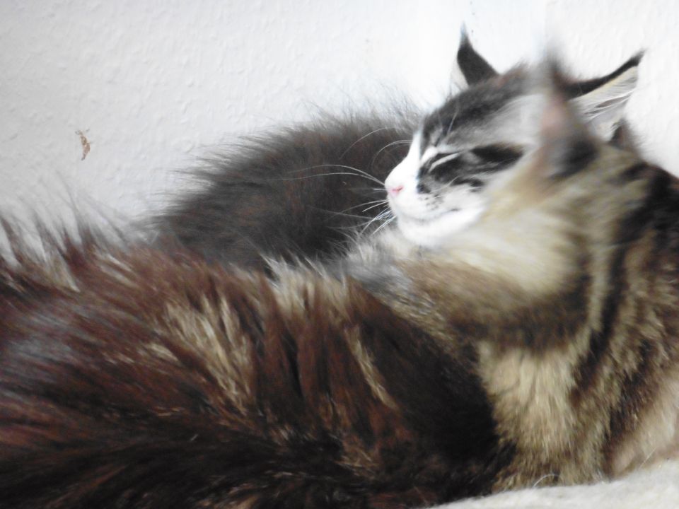 Tanisha eine besonders süÃe Maus. Total lustig und liebt es ausgiebig mit Wasser zu spielen. In der Gruppe mit den anderen fühlt sie sich ausgesprochen wohl. Und sie ist eine sehr fürsorgliche unkomplizierte Mama, die sich nicht nur um ihren eigenen Wurf super toll kümmert, nein sie hat auch unserer Riena beigebracht auf was es bei der Kittenaufzucht ankommt. Die beste Katzenmama die wir bis jetzt hatten. Danke Belinda, das du uns das Vertrauen geschenkt hast und uns dieses besondere Schätzchen überlassen hast.